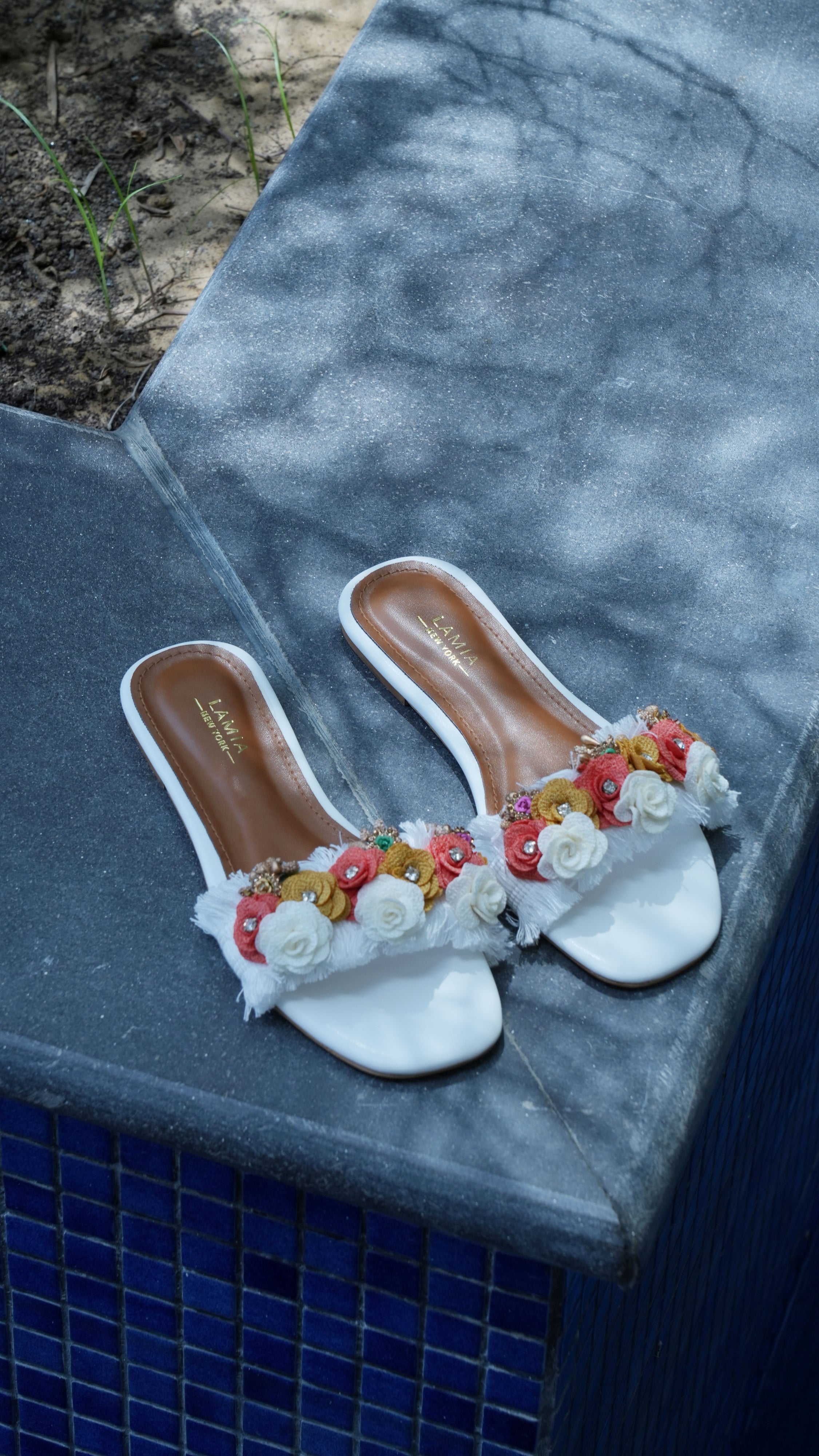 Handcrafted Floral Fringe Slides Sandals