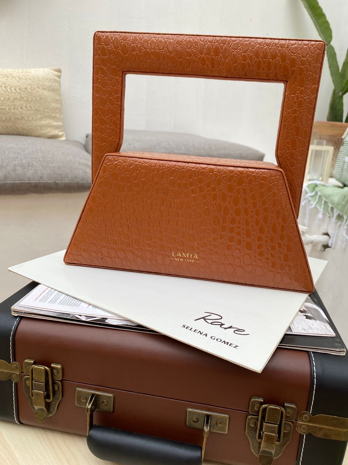 A structured square-handle bag crafted in croc-embossed leather. Lightweight, durable, and designed to elevate everyday outfits with a bold architectural touch.